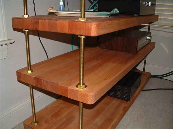 A place to discuss diy audio, share plans and schematics, and link to interesting projects. My diy rack was built by my friend jocelyn the same guy that rebuilt my acoustat's, first two pictures where the rack with wood shelves, the next two are with inch and here are photos my diy rack. The shelves are 25 x 19 x 1.5 made and milled (holes) by baird brothers in ohio and the hardware was sourced from mcmaster. Member's diy audio rack pictures, post 'em! Hrs audio stand making a diy version page 1.