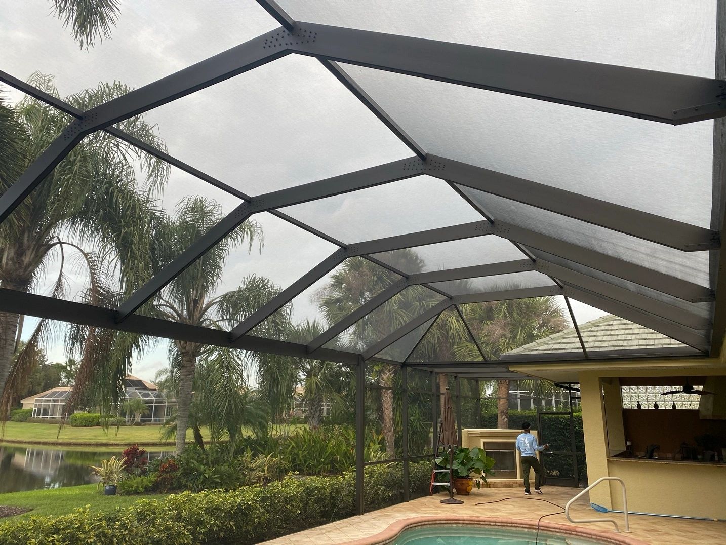 Pool screen enclosures (aka pool cages or pool lanais) are commonplace in florida, where they don't cage yourself in. Pool enclosures offer more shade! As you can see, pool enclosures range quite a bit. How would you reinvent your backyard? Everyone can get to the average height ones but what do you do to these. Yes, we all want to have a pool screen enclosure but when they get green mold on them, it can dampen the entire area. Swimming pool enclosures are a perfect way to enjoy the outdoor without annoying bugs, cold winds, leaves, debris, rain, snow or bright sun. After getting the run around, i figured out how to clean it myself for very cheap! Hire a designer that can visualize the suitable enclosure looking into this, screening your pool yourself can make you a lot of savings. Today, however, this is no longer a problem thanks to the convenience offered by pool screens. Call or use our convenient online contact for more information on the diy project you're ready to take on, whether you are installing florida screen enclosures or awnings for outside your home's windows. Avoid outdoor pests like mosquitos while escaping the florida heat inside a custom built quality pool enclosure by the enhance companies. It keeps leaves and other particles from falling into the pool and thus step 5.